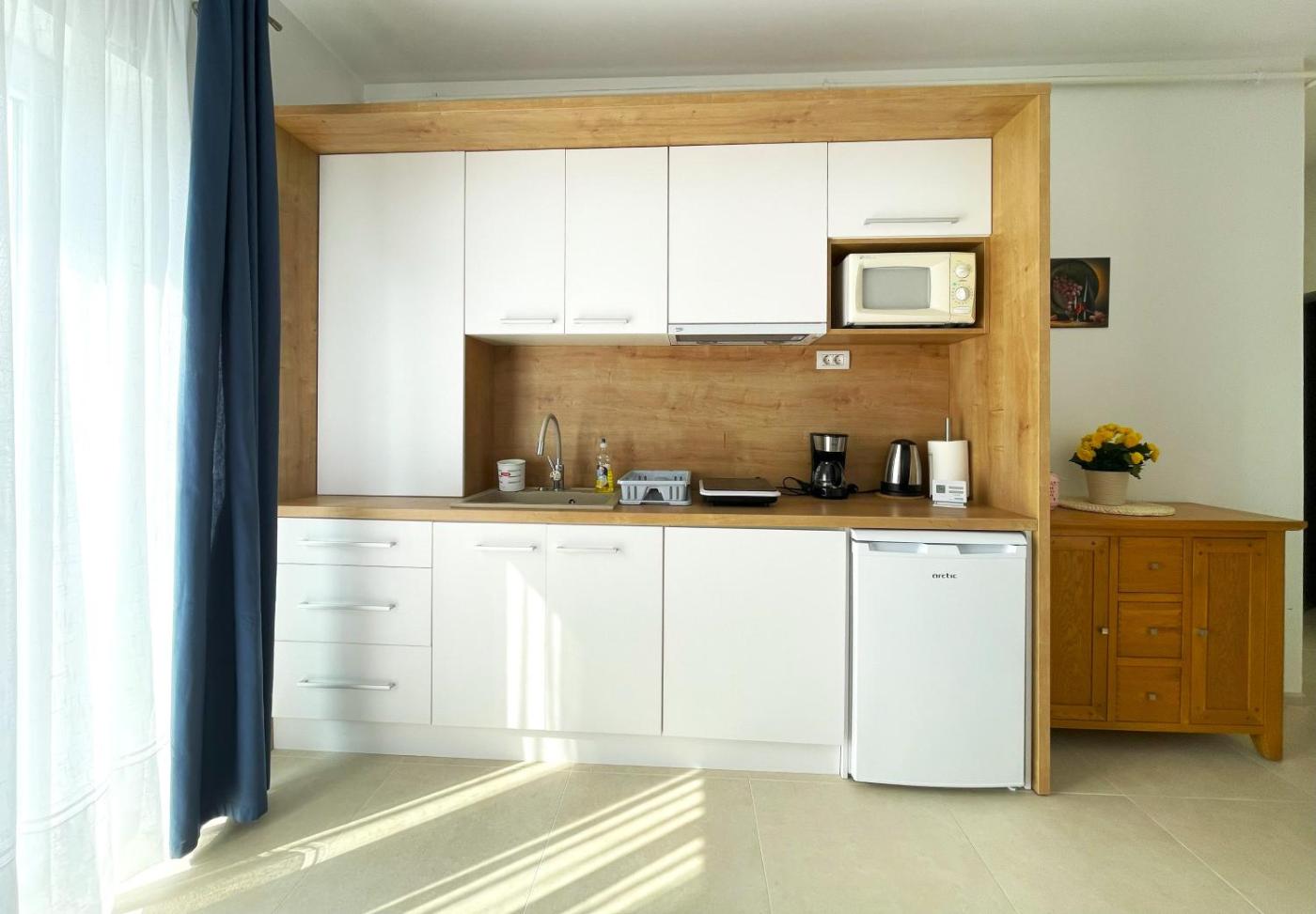 Studio Apartment. Featuring a private entrance, this apartment also comprises 1 bedroom, a seating area and 1 bathroom with a walk-in shower and a bath. Meals can be prepared in the kitchen, which comes with a stovetop, a refrigerator, kitchenware and a microwave. Boasting a balcony with mountain views, this apartment also provides a tea and coffee maker and a flat-screen TV with streaming services. The unit offers 1 bed.