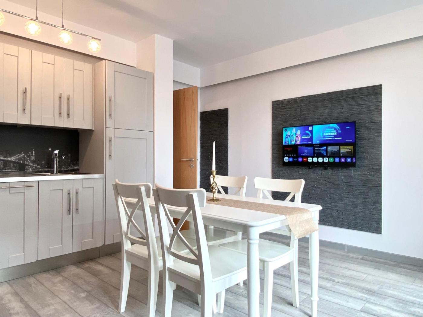 One-Bedroom Apartment. The apartment has 1 bedroom, 1 bathroom and a kitchen. The apartments kitchen is available for cooking and storing food. Boasting a balcony, this apartment also features a washing machine, heating and a flat-screen TV. The unit has 2 beds.