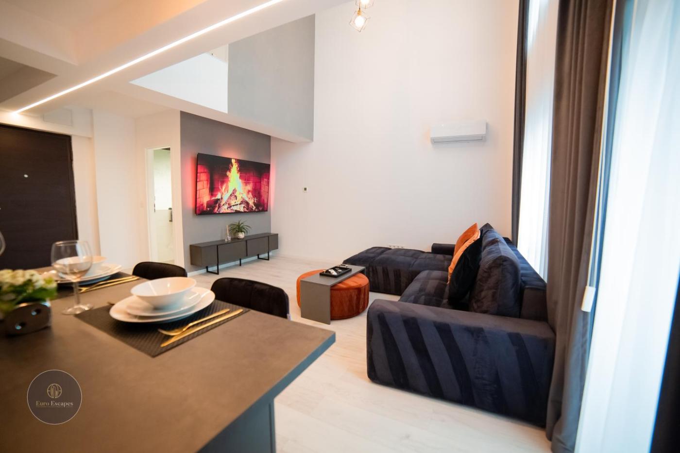 2 Level 1 Bedroom Lux Apartment with Balcony 75 Inch TV and Sofa Bed near Promenada Mall with High Ceilings Kitchen Washer and Work Space - Bucharest