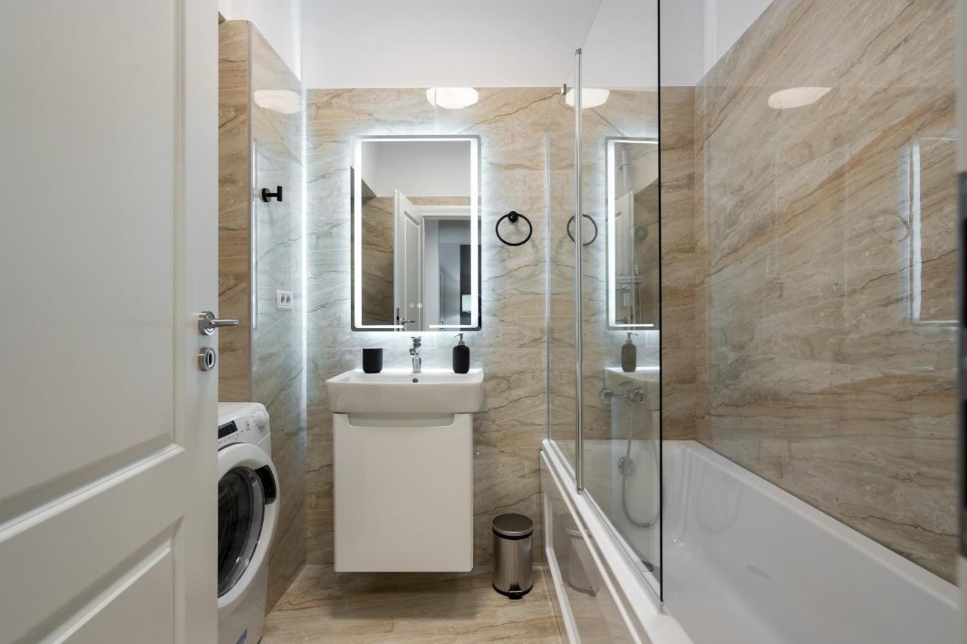One-Bedroom Apartment. Guests can make meals in the kitchen that comes with a stovetop, a refrigerator, kitchenware and an oven. This apartment is air-conditioned and features a seating area with a flat-screen TV, a washing machine, a tea and coffee maker, a dining area, as well as a wardrobe. The unit offers 2 beds.