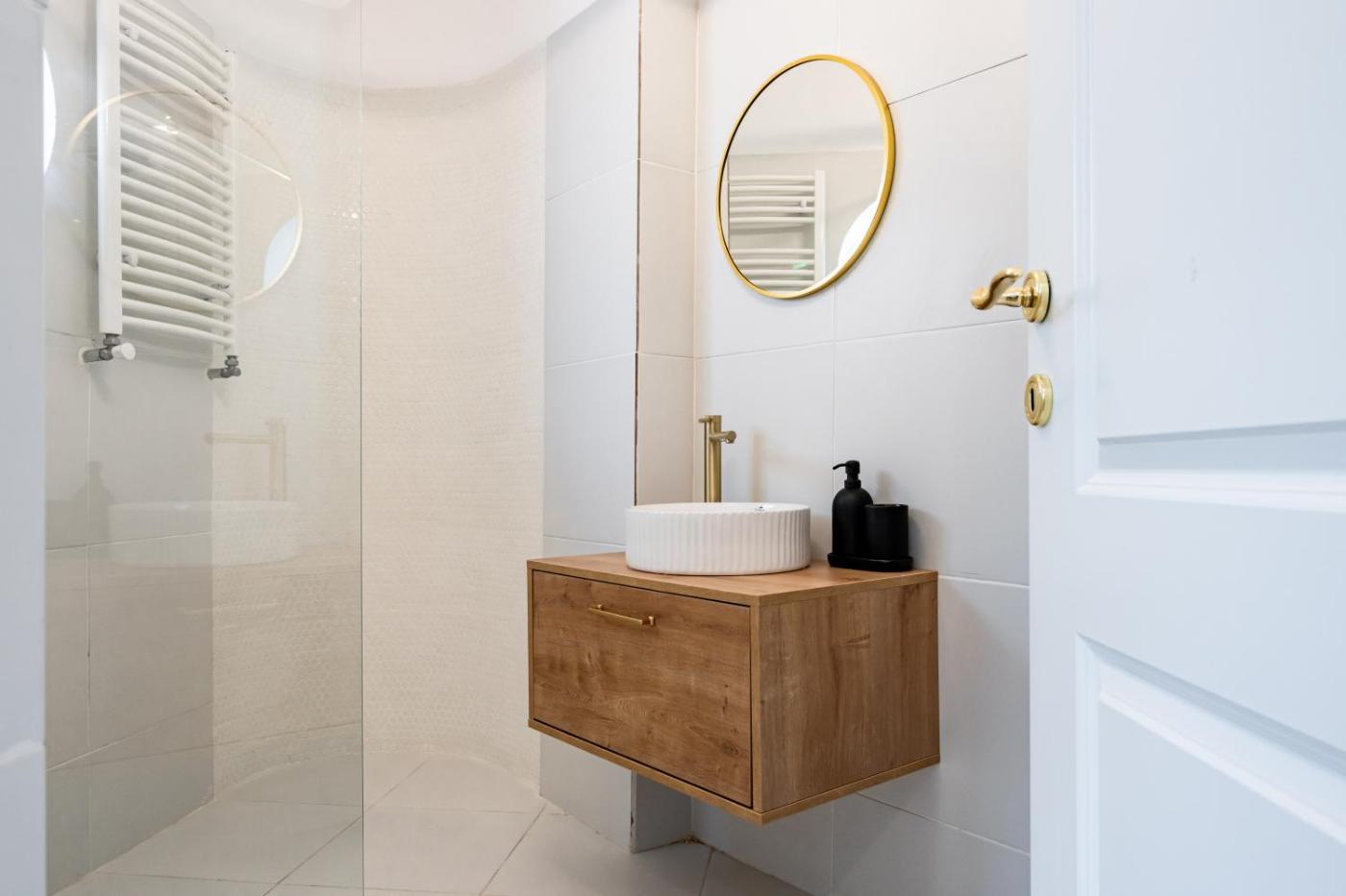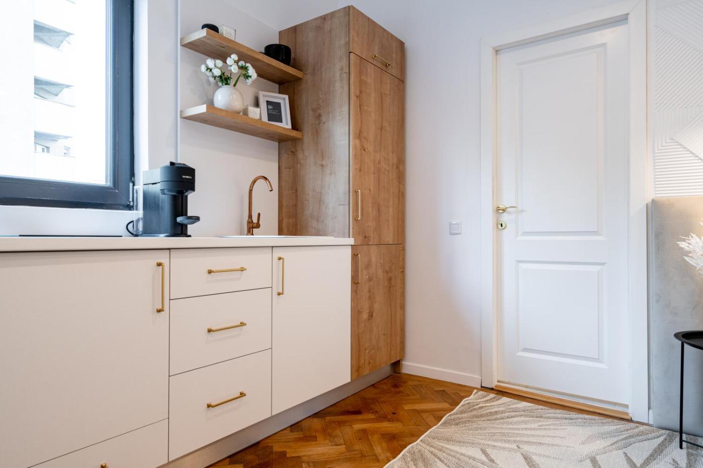 Studio Apartment. Featuring a private entrance, this air-conditioned apartment consists of a kitchen, 1 bedroom and 1 bathroom with a walk-in shower and a hairdryer. The fully equipped kitchen features a stovetop, a refrigerator, kitchenware and a microwave. The apartment provides a tea and coffee maker, a wardrobe, a dressing room, a flat-screen TV with streaming services, as well as city views. The unit offers 1 bed.