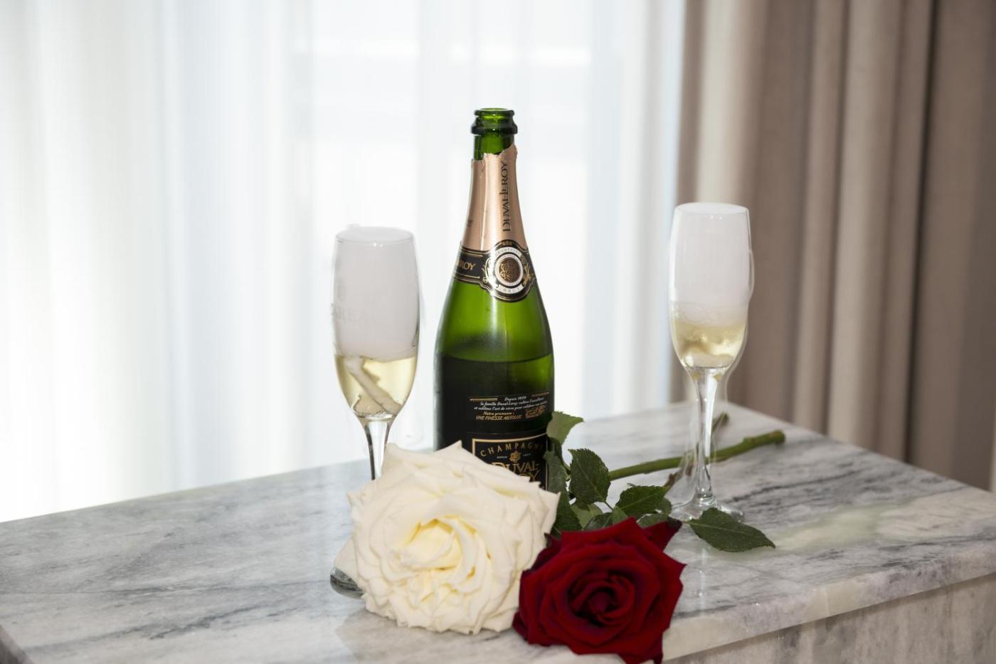 Deluxe Double Room with bathtub. The double room includes a private bathroom, well-fitted with a bath, a shower, a hairdryer and slippers. The spacious air-conditioned double room offers a flat-screen TV with streaming services, soundproof walls, a tea and coffee maker, a wardrobe as well as city views. The unit offers 1 bed. ;
