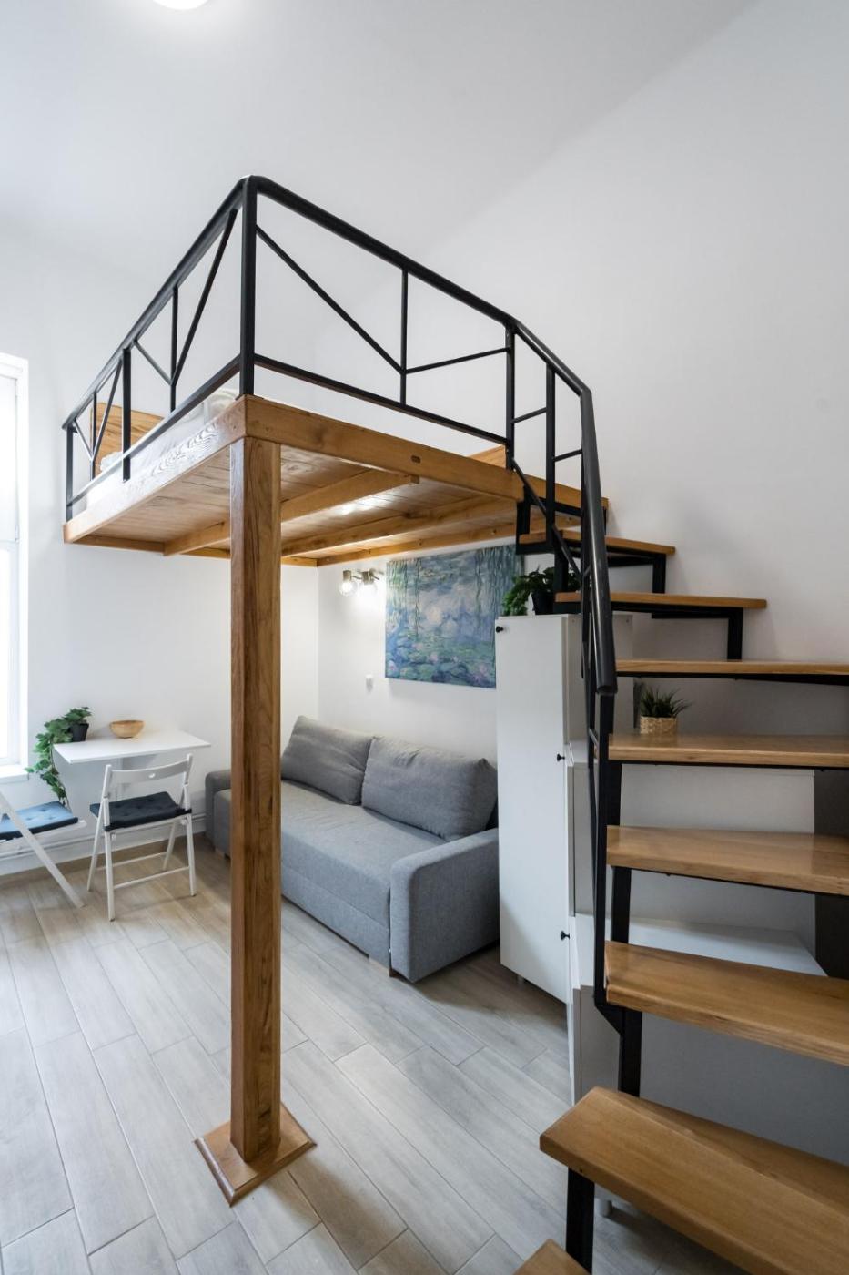 One-Bedroom Apartment. This apartment includes 1 living room, 1 separate bedroom and 1 bathroom with a shower and free toiletries. Guests can make meals in the kitchenette that has a stovetop, a refrigerator, kitchenware and a microwave. This apartment is air-conditioned and has a seating area with a flat-screen TV, a tea and coffee maker, a wardrobe and a sofa. The unit has 2 beds.