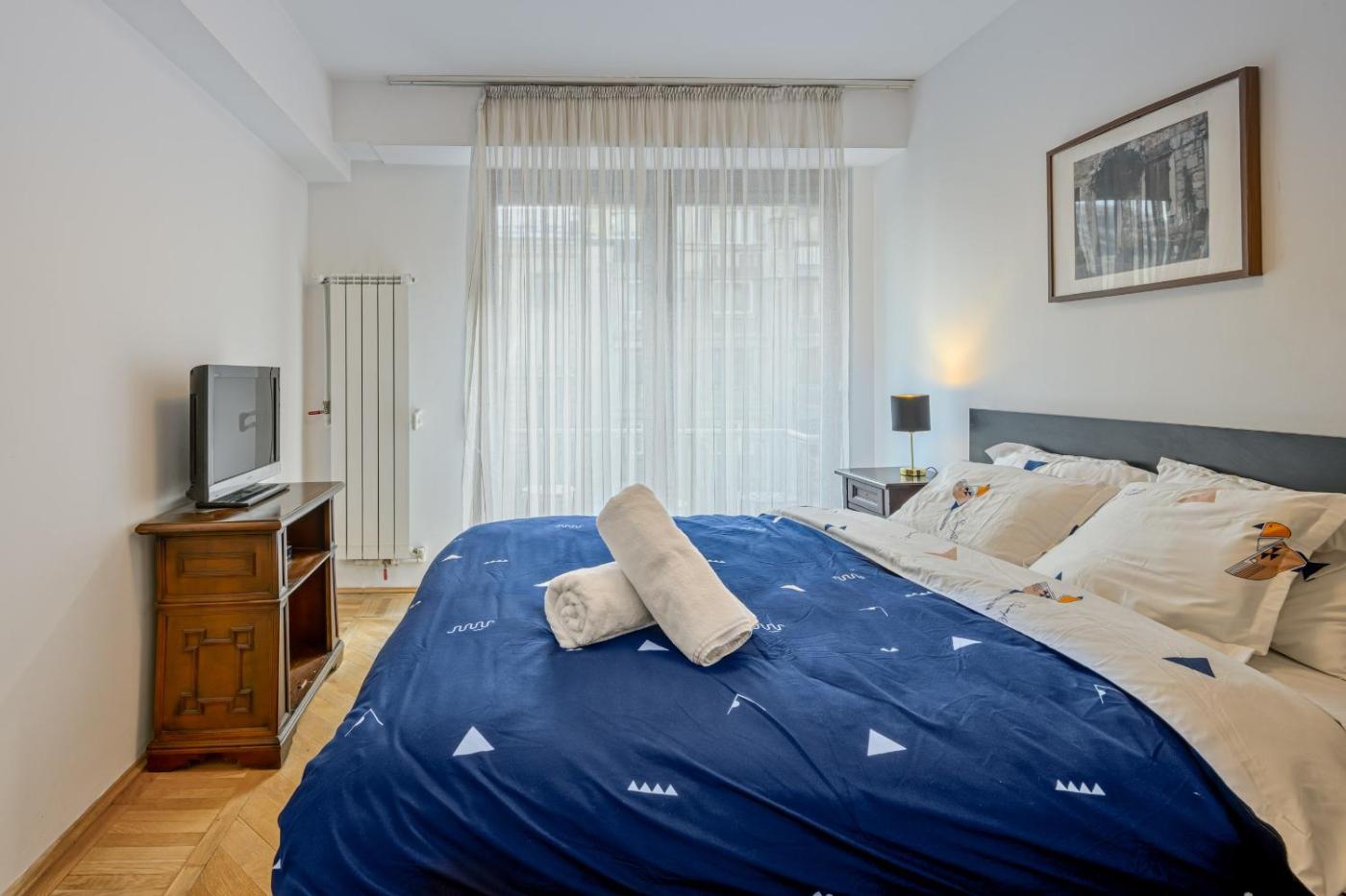 Two-Bedroom Apartment. The air-conditioned apartment features 2 bedrooms and 1 bathroom with a walk-in shower and a hairdryer. The well-fitted kitchen has a refrigerator, a microwave and a toaster. The apartment provides a washing machine, soundproof walls, a tea and coffee maker, a flat-screen TV with streaming services, as well as city views. The unit offers 2 beds.