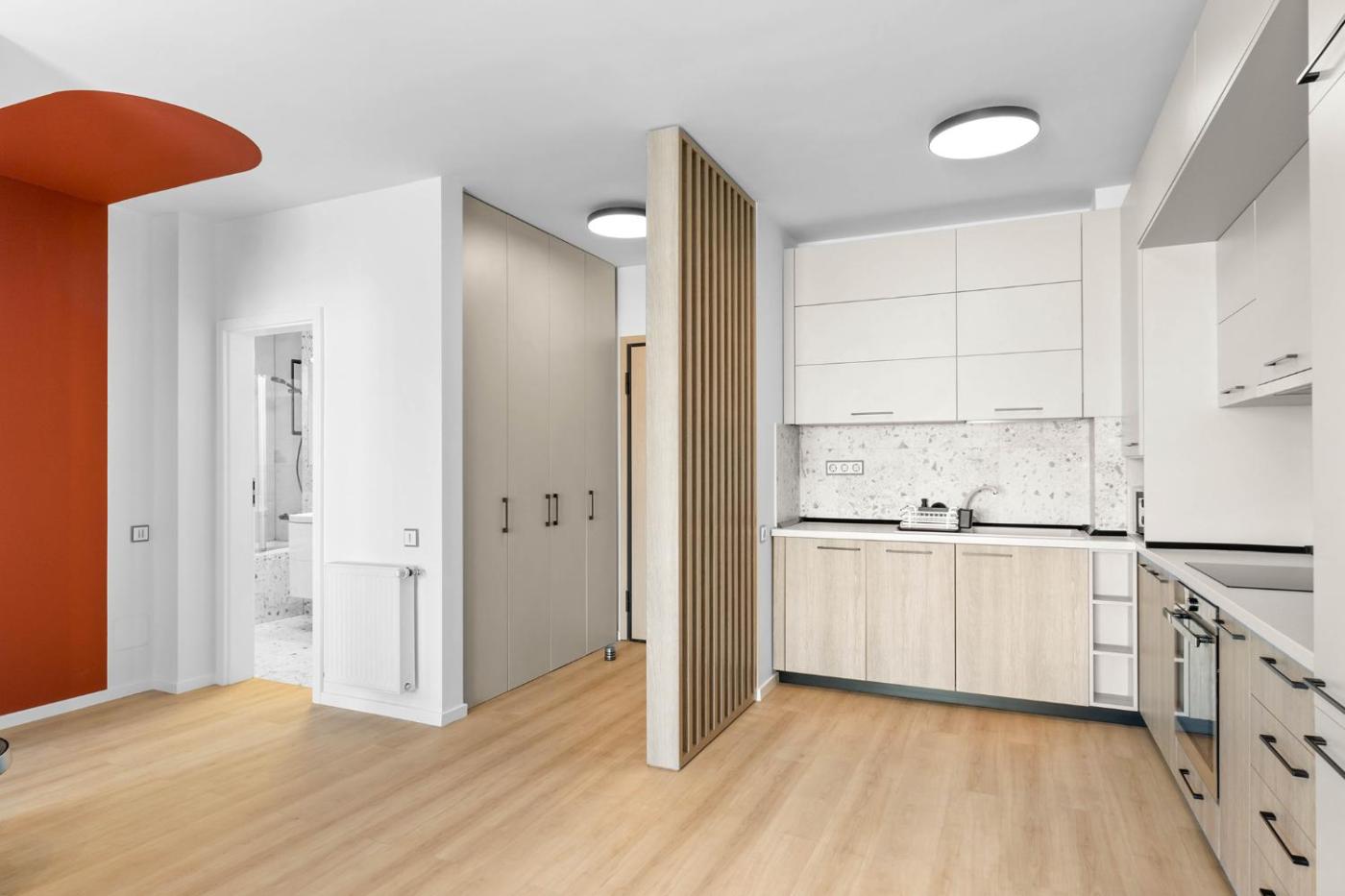 One-Bedroom Apartment. This apartment is comprised of 1 living room, 1 separate bedroom and 1 bathroom with a shower and free toiletries. Guests can make meals in the kitchen that is fitted with a stovetop, a refrigerator, a dishwasher and kitchenware. This apartment is air-conditioned and features a seating area with a flat-screen TV, a washing machine, a tea and coffee maker, a dining area, as well as a wardrobe. The unit offers 2 beds.