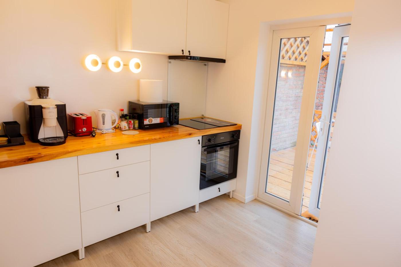 One-Bedroom Apartment. Boasting a private entrance, this air-conditioned apartment comes with 1 living room, 1 separate bedroom and 1 bathroom with a bath and a shower. Guests will find a stovetop, a refrigerator, kitchenware and an oven in the well-equipped kitchen. The apartment also includes a barbecue. The spacious apartment features a washing machine, a tea and coffee maker, a seating area, a flat-screen TV with streaming services, as well as garden views. The unit has 2 beds.