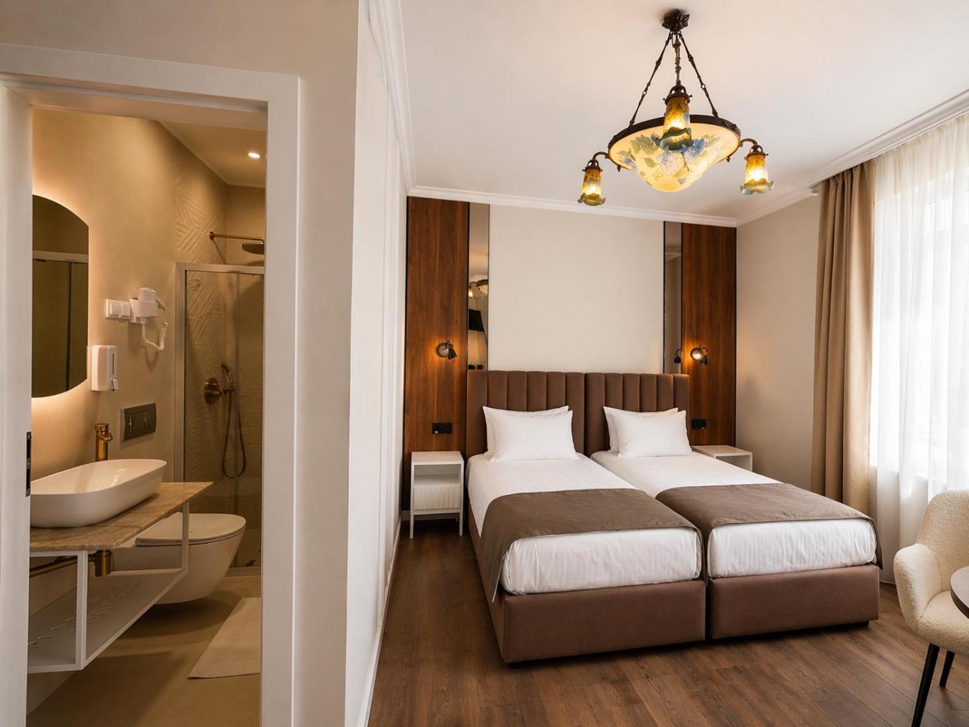 Double or Twin Room. This room comes with a private bathroom with a shower, cable TV and hardwood floors. Free toiletries and a hairdryer are available. It also features access to a shared balcony. ;