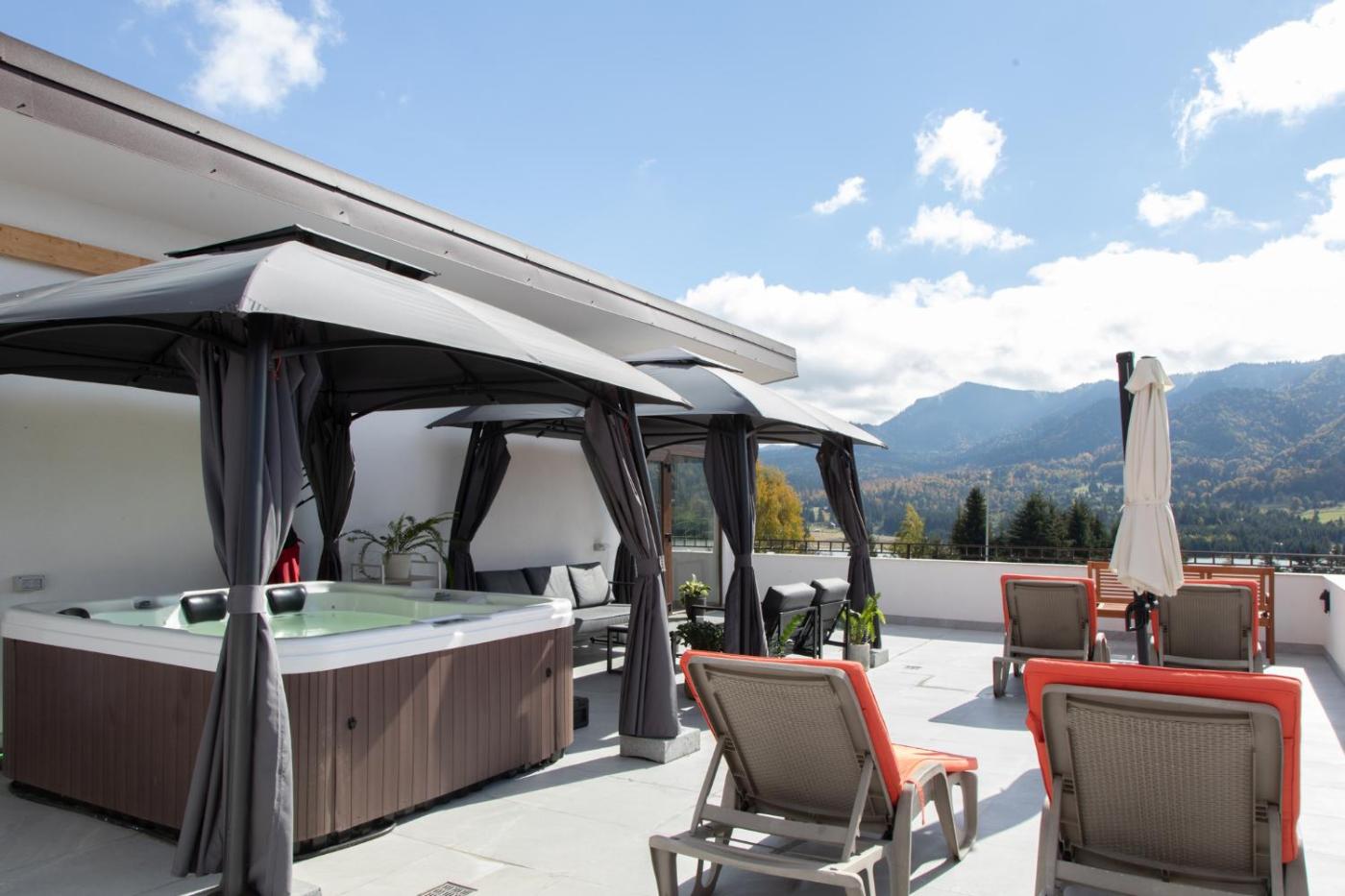 The guest house provides guests with a terrace, lake views, a seating area, cable flat-screen TV, a fully equipped kitchen with a microwave and a fridge, and a private bathroom with shower and slippers. The units come with a coffee machine, while some rooms come with a balcony and others also have mountain views. At the guest house, every unit includes bed linen and towels.