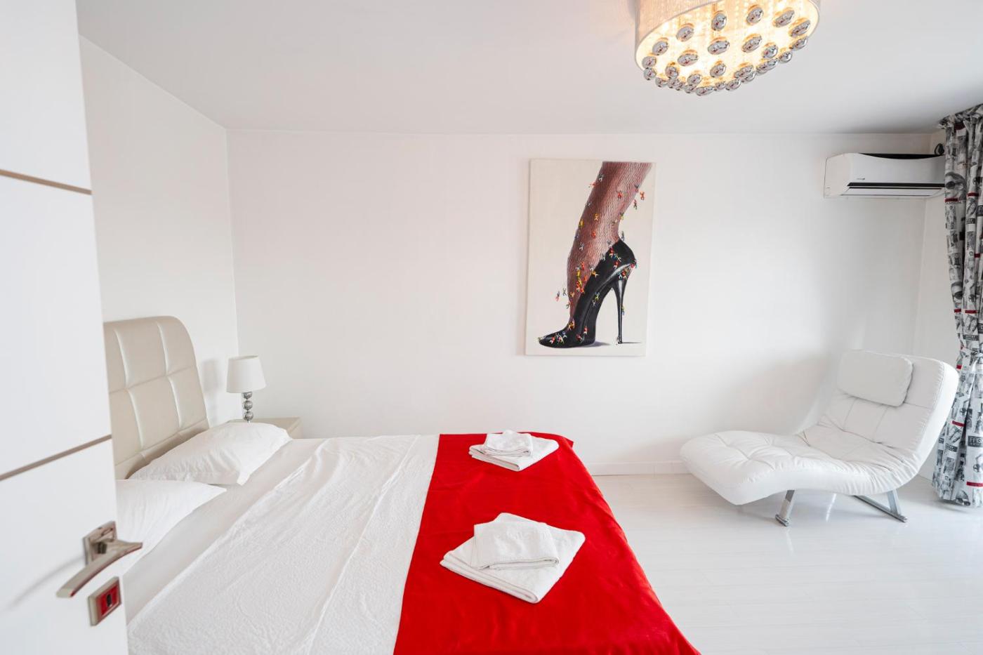 Deluxe Apartment. The air-conditioned apartment features 1 bedroom and 1 bathroom with a walk-in shower and a hairdryer. The fully equipped kitchen has a stovetop, a refrigerator, kitchenware and a microwave. Featuring a terrace with city views, this apartment also provides a washing machine and a flat-screen TV with cable channels. The unit offers 1 bed.
