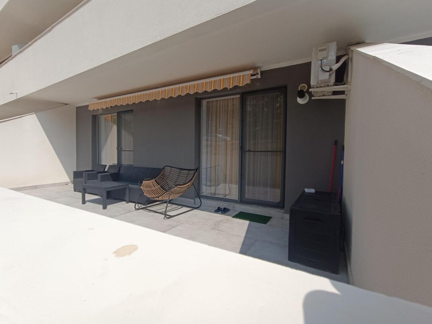 The apartment has 1 bedroom, 1 bathroom, bed linen, towels, a flat-screen TV with streaming services, a dining area, a fully equipped kitchen, and a terrace with garden views. Guests can enjoy a meal on an outdoor dining area while overlooking the quiet street views.