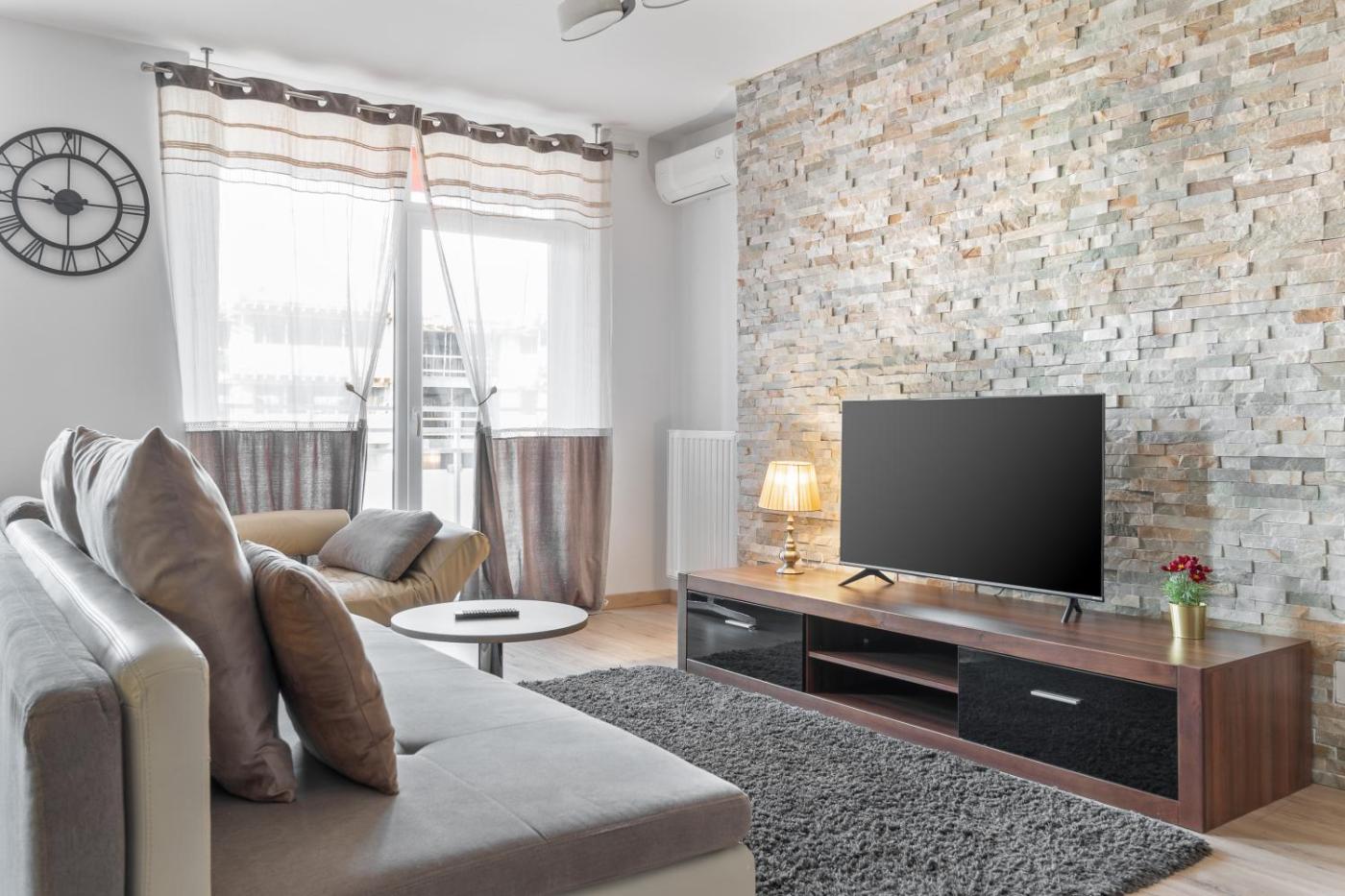 One-Bedroom Apartment. Boasting a private entrance, this air-conditioned apartment comes with 1 living room, 1 separate bedroom and 1 bathroom with a bath and a hairdryer. Guests will find a stovetop, a refrigerator, kitchenware and an oven in the fully equipped kitchen. The apartment also includes a barbecue. The apartment features a washing machine, soundproof walls, a tea and coffee maker, a flat-screen TV with cable channels, as well as city views. The unit has 2 beds.