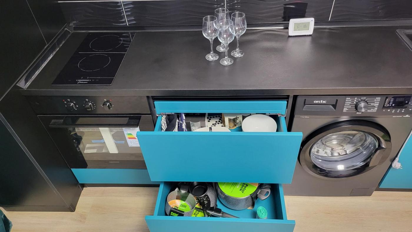 Three-Bedroom Apartment. The apartment has 3 bedrooms and 1 bathroom with a walk-in shower and free toiletries. In the kitchen, guests will find a stovetop, a refrigerator, kitchenware and an oven. The apartment offers a washing machine, a private entrance, soundproof walls, a minibar, as well as a flat-screen TV with streaming services. The unit has 3 beds.