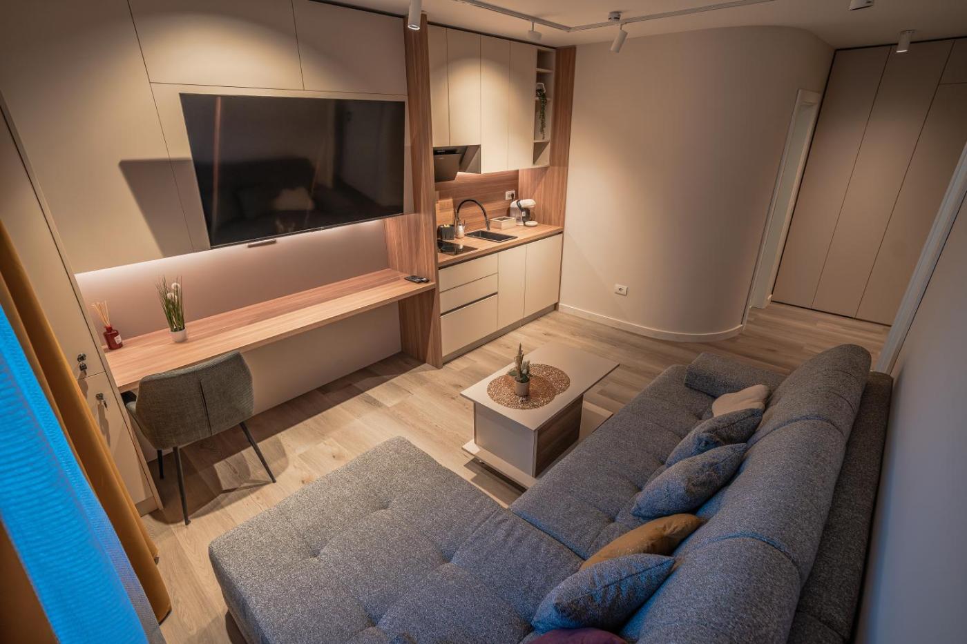One-Bedroom Apartment. Guests can make meals in the kitchenette that comes with a stovetop, a refrigerator, kitchenware and a tea and coffee maker. The air-conditioned apartment offers a flat-screen TV with streaming services, a washing machine, a private entrance, soundproof walls as well as city views. The unit offers 2 beds.
