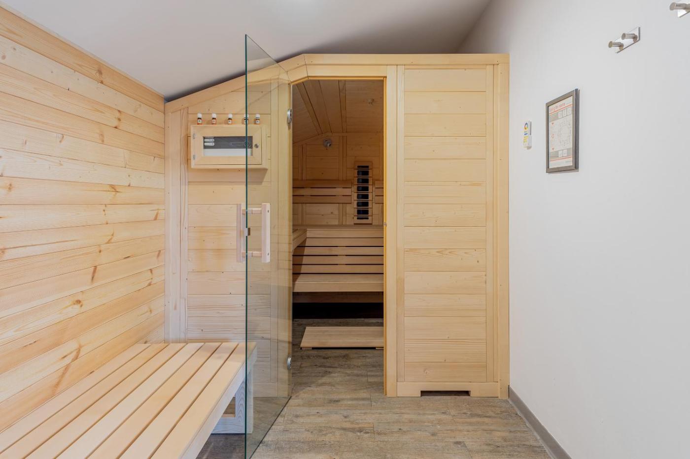 Three-Bedroom Apartment. This apartments standout features are the hot tub, sauna and fireplace. Featuring a private entrance, this air-conditioned apartment comprises 1 living room, 3 separate bedrooms and 6 bathrooms with a walk-in shower and a bath. Guests can make meals in the kitchen that comes with a refrigerator, a dishwasher, kitchenware and an oven. The spacious apartment provides a washing machine, soundproof walls, a minibar, a flat-screen TV with streaming services, as well as garden views. The unit offers 5 beds.